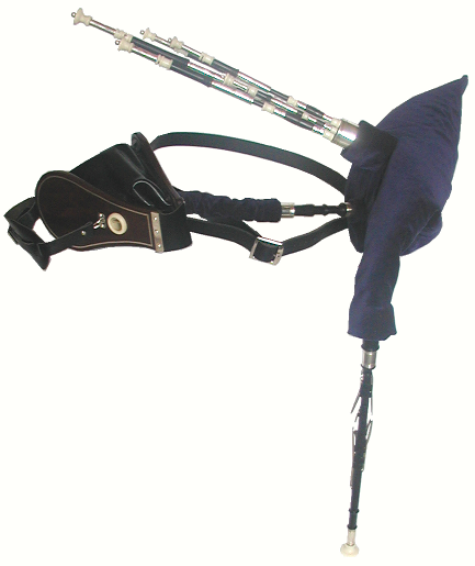 At the front of the bag is a neck in which the stock for the chanter is mounted.